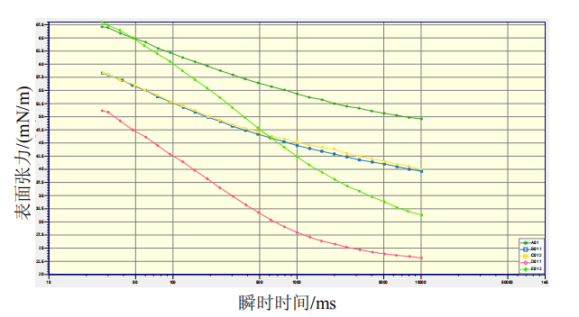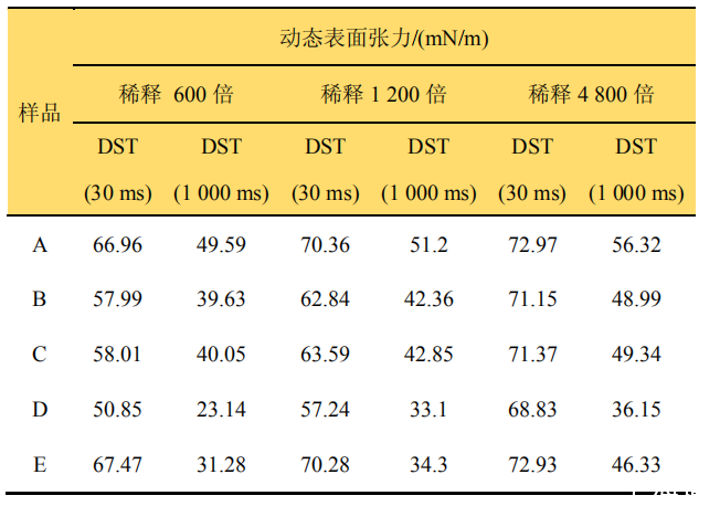 硝磺草酮懸浮劑制劑不同稀釋倍數(shù)的動(dòng)態(tài)表面張力測(cè)定結(jié)果