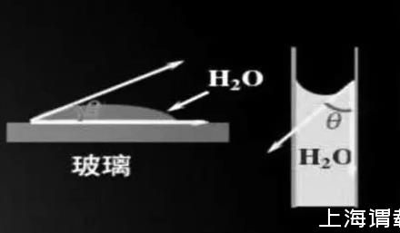 在實際工作中,通常會用到接觸角結(jié)合γg-l氣-液界面張力來判斷鋪展過程是否自動進(jìn)行。接觸角,是指在固相、液相、氣相這三相的交界點,兩個界面張力(氣-固界面與氣-液界面)之間的夾角,通常用θ表示。如圖1,將水滴滴到玻璃上,接觸角如圖所示。