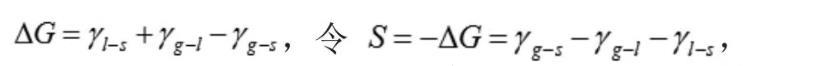 鋪展,是指在等溫、等壓的條件下,液固界面取代了氣固界面,然后產(chǎn)生了氣液界面,這樣一個物理過程。等溫、等壓條件下,可逆鋪展單位面積時,Gibbs自由能的變化值為