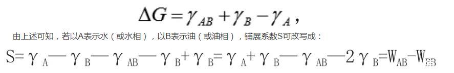 此外黏附功的計(jì)算式中γAB為A和B的液液界面張力,關(guān)于這個(gè)界面張力的計(jì)算,有多重理論,最簡單的一種是Antonoff規(guī)則,該規(guī)則認(rèn)為γAB=γA飽和—γB飽和,式子中γA飽和、γB飽和指的是指的是液體A和液體B相互飽和后的表面張力,而不是其各自的表面張力。