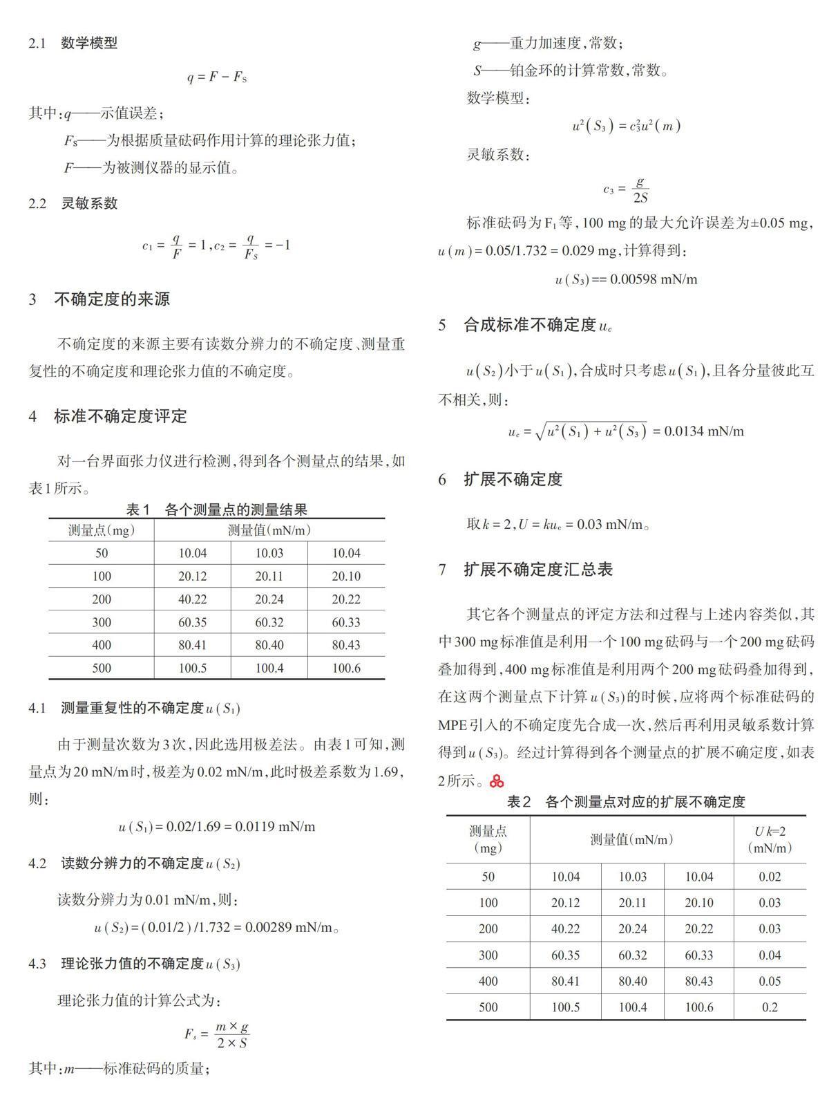 不確定度的來(lái)源主要有讀數(shù)分辨力的不確定度、測(cè)量重復(fù)性的不確定度和理論張力值的不確定度。