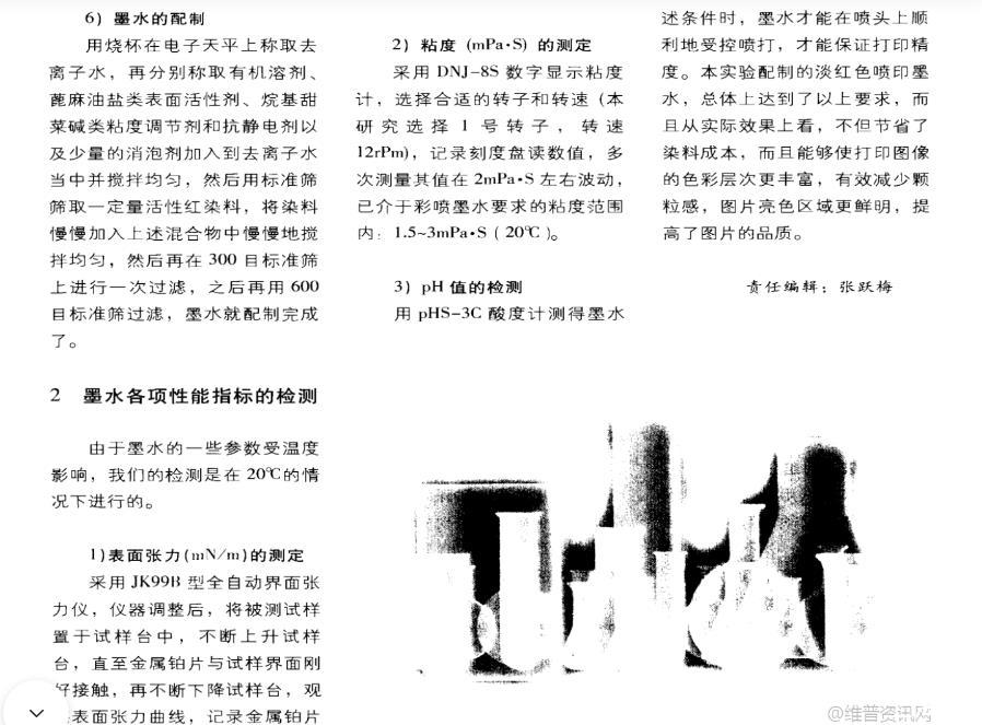 經(jīng)過多次測量,其表面張力儀均在35mN/m左右波動,已介于彩噴墨水要求的表面張力范圍30-50mN/m(20攝氏度)。