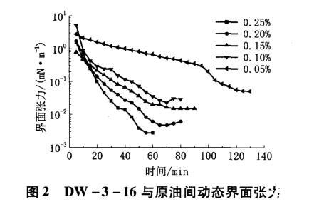 圖2 DW-3-16與原油間動(dòng)態(tài)界面張力