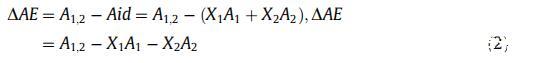 其中 A1,2 是 mma,Aid 是理想的混合單層,X1 和 X2 分別是組分 1 和 2 的摩爾分?jǐn)?shù)。 A1 和 A2 是相同表面壓力下每分子純單分子層的相應(yīng)面積。 DAE 值變?yōu)榱?當(dāng)物質(zhì)形成理想混合物或不混溶時 (瓊斯和查普曼,1996 年)。