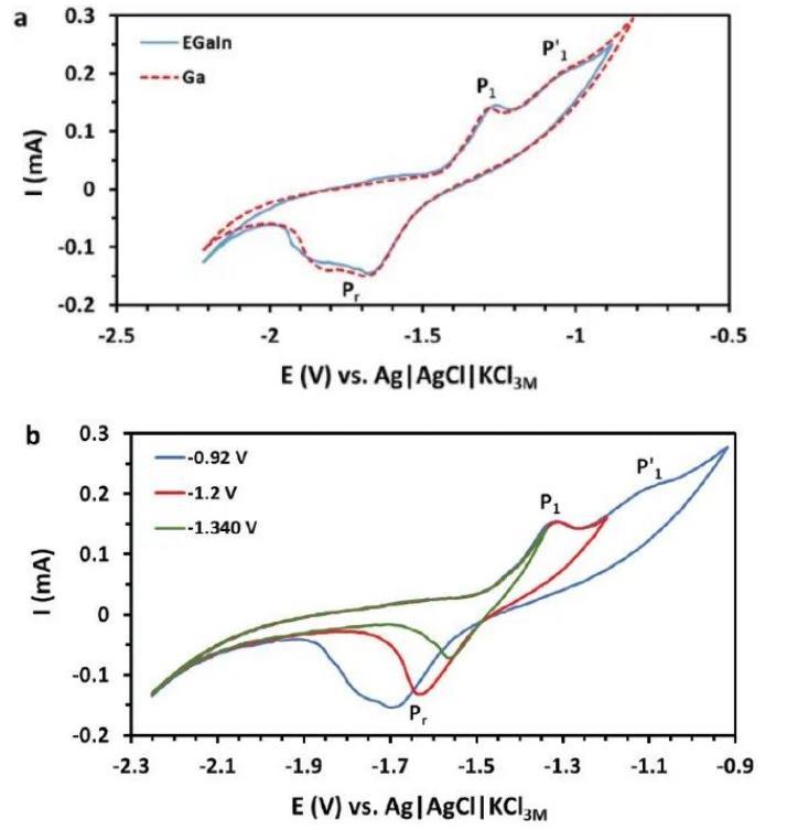 電化學氧化作用可以誘導液態(tài)金屬表面生成不同的氧化物或氫氧化物薄層,而這種表面變化對界面張力的影響非常顯著。例如,研究發(fā)現,氧化鎵薄膜會在特定的電位下破裂并溶解,使得液態(tài)金屬的表面張力急劇下降。通過控制電化學氧化的電位,能夠在微觀層面實現液態(tài)金屬的“開關”效應,有望用于開發(fā)可控液態(tài)金屬元件。