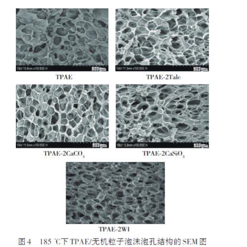 圖4 185℃下TPAE/無(wú)機(jī)粒子泡沫泡孔結(jié)構(gòu)的SEM圖