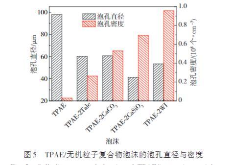 圖5 TPAE/無(wú)機(jī)粒子復(fù)合物泡沫的泡孔直徑與密度