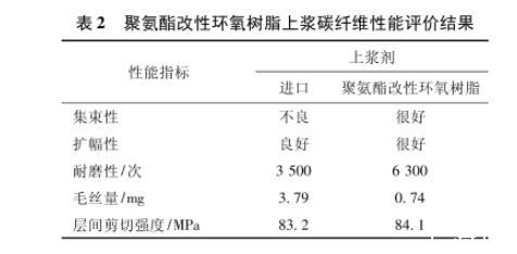 2.1聚氨酯改性環(huán)氧樹脂上漿劑對(duì)碳纖維的影響