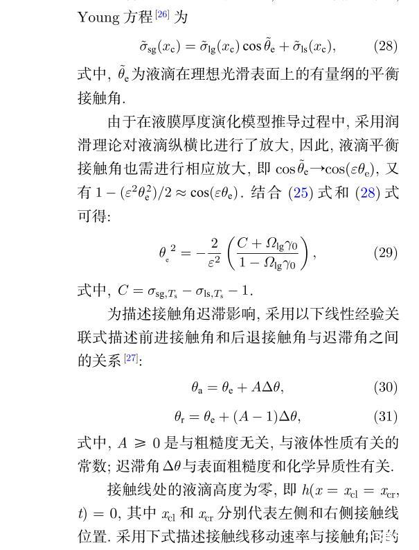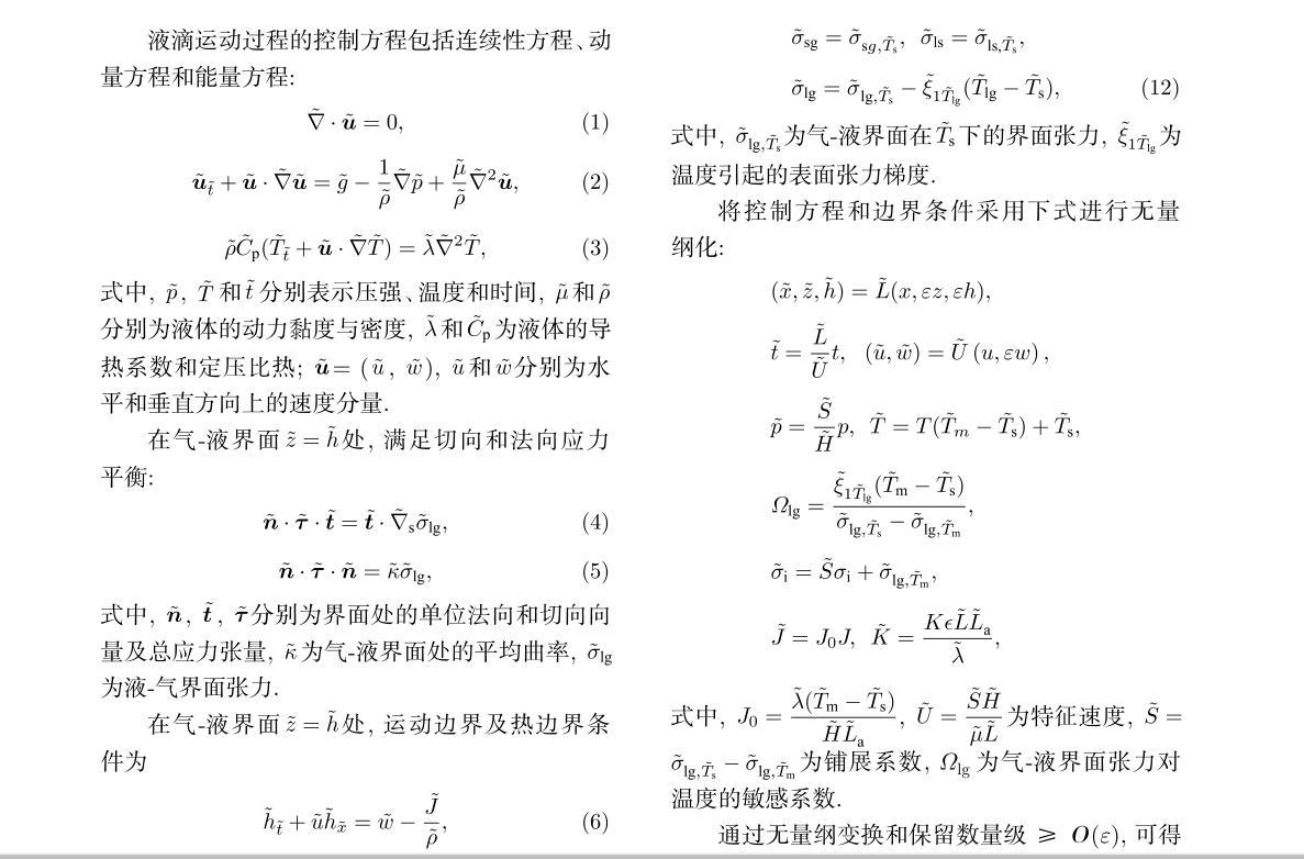 接觸角遲滯時氣~液界面張力的溫度敏感性對液滴蒸發(fā)過程的影響——理論模型及計算方法