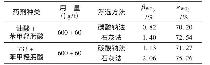 表4不同浮選方法選白鎢礦的浮選指標(biāo)
