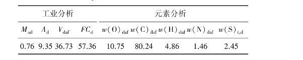 試驗(yàn)采用山東能源新礦集團(tuán)內(nèi)蒙古能源中心選煤廠浮選精煤,經(jīng)充分混合晾干后,密封保存待用。煤質(zhì)分析見表1。由表1可知,樣品灰分較低,僅為9.35%。元素分析中氧含量為10.75%,主要來(lái)自煤中的無(wú)機(jī)礦物質(zhì)和煤表面的一些含氧基團(tuán),煤中的無(wú)機(jī)礦物質(zhì)和含氧基團(tuán)與水能夠形成較強(qiáng)的氫鍵作用,使煤樣顯現(xiàn)出親水性,且水分不易排出。