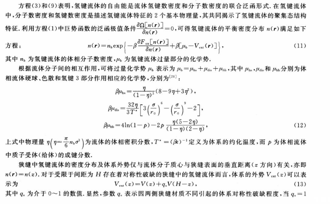 其中nb為氫鍵流體的體相分子數(shù)密度,μb為氫鍵流體過量部分的化學(xué)勢。