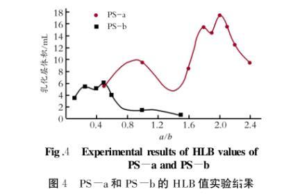 圖4 PS-a和PS-b的HLB值實(shí)驗(yàn)結(jié)果