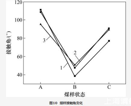 圖10煤樣接觸角變化