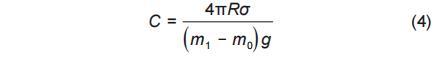 采用拉筒法測(cè)量納米熔鹽液體表面張力前,可通過(guò)測(cè)量已知液體的表面張力,通過(guò)式(4)對(duì)表面張力實(shí)驗(yàn)臺(tái)的儀器系數(shù)進(jìn)行標(biāo)定。