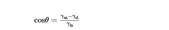 在由顆粒穩(wěn)定的泡沫中,氣泡表面存在不可逆吸附的顆粒層,可以起到抵抗聚結(jié)和粗化的物理屏障作用。顆粒必須首先吸附到表面上才能實(shí)現(xiàn)穩(wěn)定泡沫的功能。通常認(rèn)為,顆粒在空氣/液體表面的吸附與顆粒的潤(rùn)濕性相關(guān),該潤(rùn)濕性通過(guò)顆粒與空氣/液體界面的接觸角來(lái)量化,可由楊氏方程計(jì)算得到: