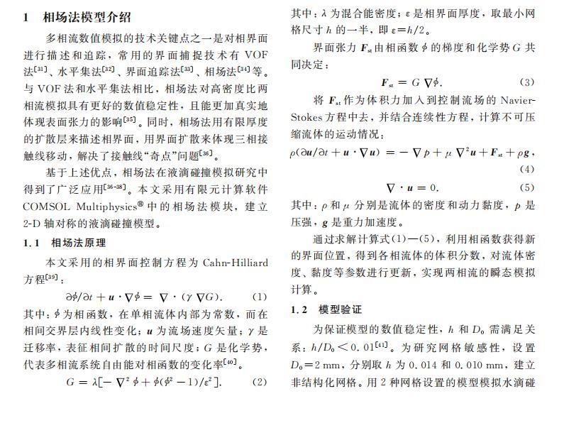 基于上述優(yōu)點,相場法在液滴碰撞模擬研究中得到了廣泛應(yīng)用。本文采用有限元計算軟件COMSOL Multiphysics