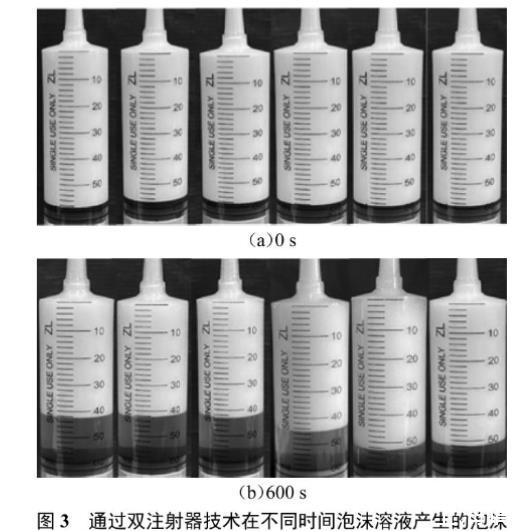 圖3通過雙注射器技術(shù)在不同時(shí)間泡沫溶液產(chǎn)生的泡沫
