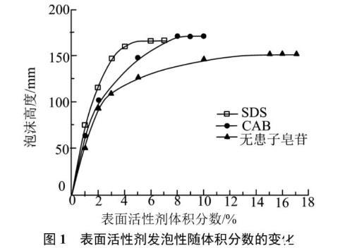 圖1表面活性劑發(fā)泡性隨體積分?jǐn)?shù)的變化
