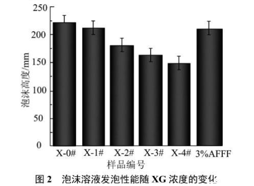 2.2 XG對(duì)泡沫溶液性能的影響
