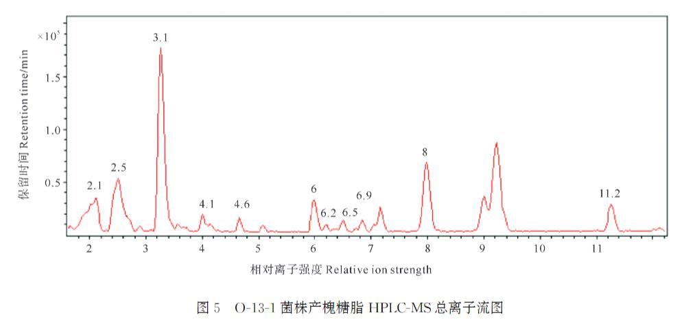 圖5 O-13-1菌株產(chǎn)槐糖脂HPLC-MS總離子流圖