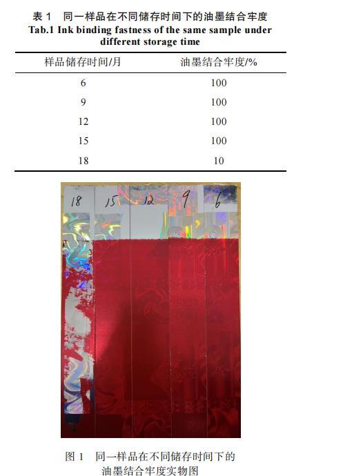 表1同一樣品在不同儲存時間下的油墨結(jié)合牢度