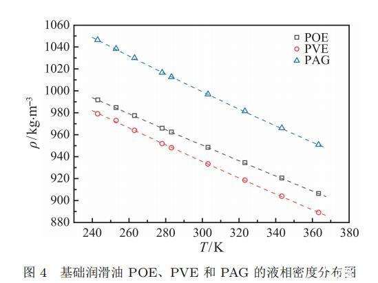 圖 4 基礎(chǔ)潤滑油 POE、PVE 和 PAG 的液相密度分布圖