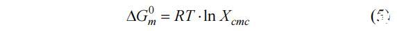 膠束化的標(biāo)準(zhǔn)熵(0dsm)是根據(jù)膠束化的標(biāo)準(zhǔn)吉布斯自由能的溫度依賴性,使用關(guān)系式(6)[30,31]計(jì)算得出的: