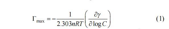 空氣/水界面吸附的有效測(cè)量方法是通過(guò)表面過(guò)剩量,Γmax(mol?m-2),通過(guò)吉布斯吸附方程計(jì)算[27]: