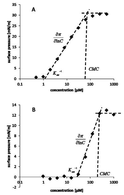 圖3。(A)化合物29和(B)尼群地平的表面壓力分布的代表性示例。虛線和方程描述了表面張力參數(shù)的推導(dǎo)過程。
