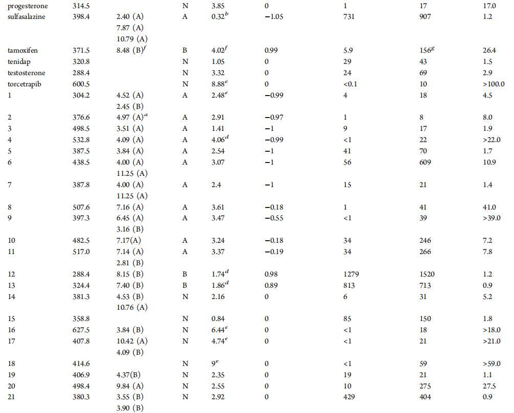 表1。51種化合物的理化性質(zhì)和溶解度數(shù)據(jù);除非另有說明,否則數(shù)據(jù)按實(shí)驗(yàn)部分所述生成