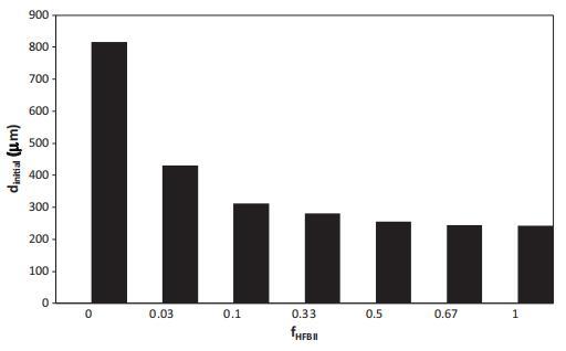 圖8給出了以與圖3相同的HFBII:WPI比率制備的兩種泡沫的初始?xì)馀莩叽纭W钪匾挠^察結(jié)果是,少量HFBII(來自fHFBII 0.03)在很大程度上影響泡沫的初始?xì)馀莩叽纭4送?,似乎從WPI主導(dǎo)向HFBII主導(dǎo)的行為轉(zhuǎn)變發(fā)生在fHFBII~=0.2,對應(yīng)于朗繆爾槽中吸附層中觀察到的轉(zhuǎn)變(圖6)。