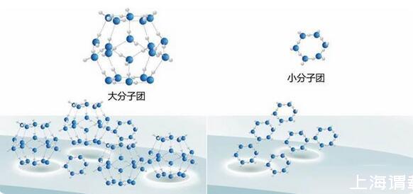 科學(xué)家近些年通過研究發(fā)現(xiàn),氣態(tài)的水可以假設(shè)為單個(gè)水分子或者是二聚體水分子;處于液相與氣相過渡狀態(tài)的水分子可能會(huì)有簡(jiǎn)單的三元、四元、五元甚至六元環(huán)形分子存在;液相水分子團(tuán)的結(jié)構(gòu)要大于液相與氣相過渡狀態(tài)的水分子,會(huì)有六元、七元、八元甚至是更大的分子團(tuán)存在。當(dāng)分子簇大于7以后已經(jīng)不大容易形成單個(gè)的環(huán)狀分子簇了,即便可以勉強(qiáng)形成大環(huán)分子狀態(tài)上也十分不穩(wěn)定,很快便會(huì)通過變形轉(zhuǎn)化成折疊形態(tài)或多環(huán)結(jié)構(gòu)。與高分子不同的是由于水分子之間并沒有形成共價(jià)鍵而是以氫鍵相連,因而這種分子鏈在液態(tài)時(shí)十分脆弱,應(yīng)該處于動(dòng)態(tài)下的不斷斷裂和組合過程中。