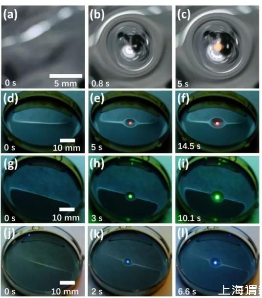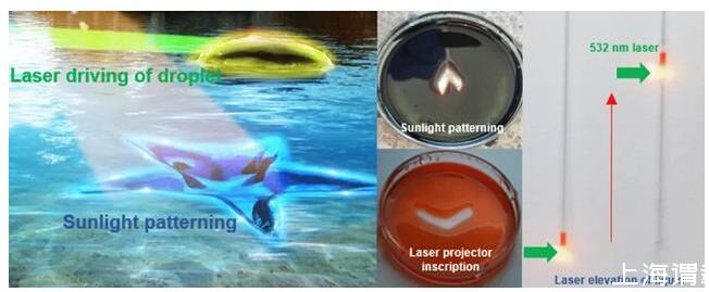 研究中,王志明團(tuán)隊(duì)也展示了一些基本應(yīng)用示例,比如借助激光和日光可以在液體表面雕刻圖形,還可讓激光搬運(yùn)液體,讓激光驅(qū)動(dòng)毛細(xì)管中的液體,讓激光驅(qū)動(dòng)液體表面液滴、甚至驅(qū)動(dòng)不同液滴發(fā)生化學(xué)反應(yīng)的應(yīng)用。