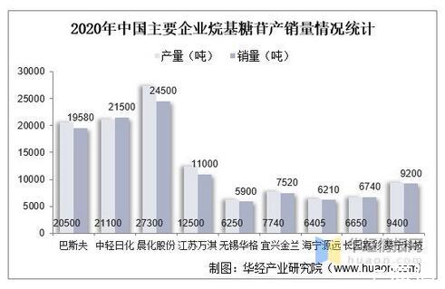 2020年中國(guó)主要企業(yè)烷基糖苷產(chǎn)銷量情況統(tǒng)計(jì)