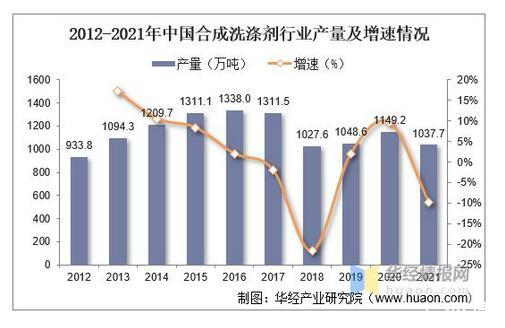 2012-2021年中國(guó)合成洗滌劑行業(yè)產(chǎn)量及增速情況