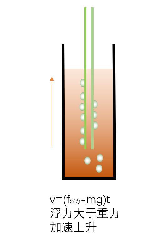 這時(shí)上升過程中,吸管可能因?yàn)樽笥覂蓚?cè)吸附的氣泡數(shù)量不同而發(fā)生浮力差異而傾斜。也可能因?yàn)橥饨鐢_動(dòng)而發(fā)生傾斜,反正吸管豎直上升的可能性很小。習(xí)慣傾斜碰到瓶壁后繼續(xù)上升,上升帶來氣泡的減少,吸管自身浮力的下降。當(dāng)浮力減小到小于重力時(shí),這時(shí)開始i減速,直到速度為零。如下圖所示;