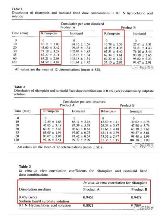 利福平與異煙肼復方制劑在進行溶出曲線測定時發(fā)現(xiàn)利福平在0.1N鹽酸中不穩(wěn)定,發(fā)生降解。由于利福平在水中不溶,因此采用了0.4%SDS溶液進行了研究,結果表明在整個分析檢測過程中無降解。而且,0.4%SDS溶液的體內外相關性很好。