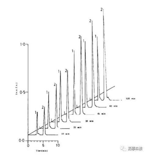 利福平在酸溶液中的降解情況(3、4為兩個降解物峰)