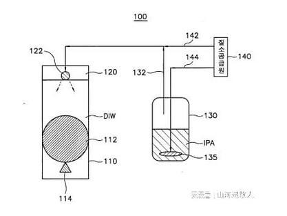 參照圖3,在所述引擎蓋的底面上形成了用于破斷移至所述殼體上部的晶片的系合槽。所述系合槽用于使已完成干燥工藝的晶片與所述殼體分離;該小定位置形成了一個噴射孔,該噴射孔將從上述散裂器噴射的異丙基醇蒸氣引導到上述殼體內(nèi)。