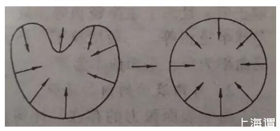 當(dāng)你吹泡泡的時(shí)候,無(wú)論用什么泡泡圈,吹出來(lái)的泡泡都是近球形的,童鞋們會(huì)懊惱為什么:不能吹個(gè)泡泡都是愛(ài)你的形狀呢?從受力分析而言,當(dāng)泡泡為不規(guī)則形狀時(shí),其相鄰的兩點(diǎn)曲率不一樣,則表面張力方向不一樣,根據(jù)受力分析,水會(huì)向合力的方向流動(dòng),最后平衡狀態(tài)為相鄰兩點(diǎn)受力一致,曲率一致。推廣到整體,就是一整個(gè)球體形狀的形成。