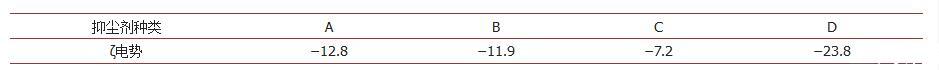 表2.四種抑塵劑的ζ電勢(shì)