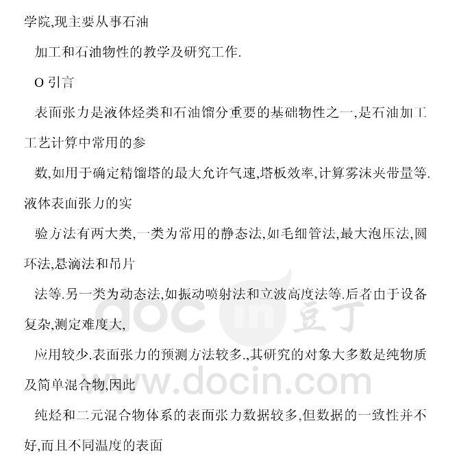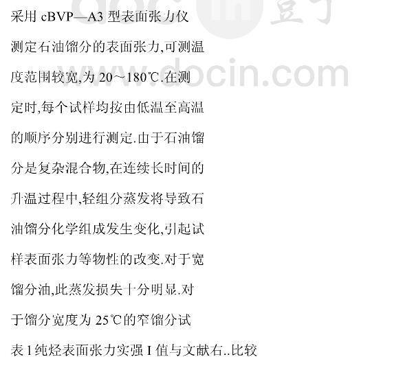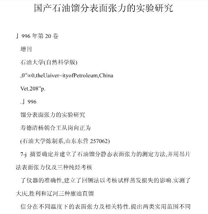 國(guó)產(chǎn)石油餾分表面張力的實(shí)驗(yàn)研究