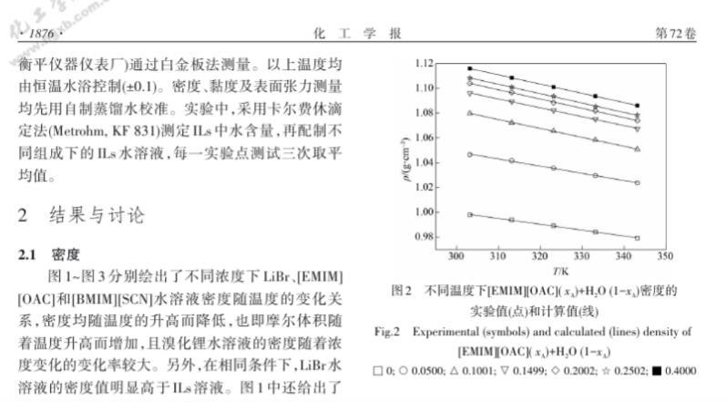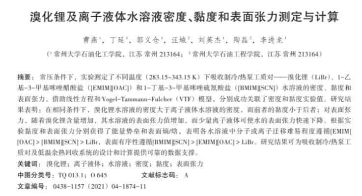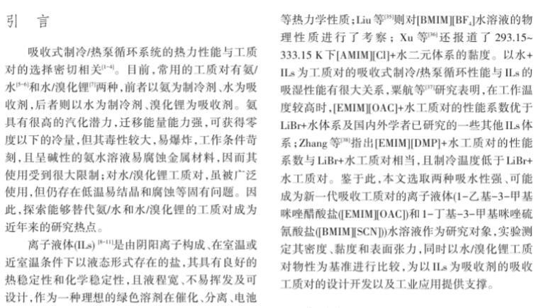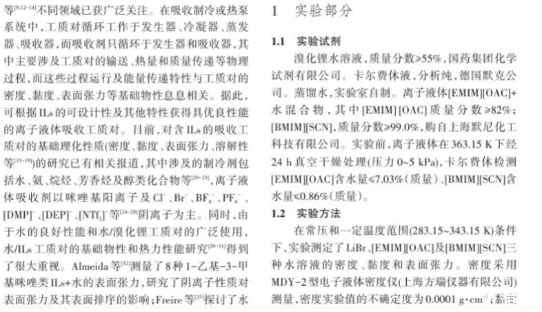 溴化鋰及離子液體水溶液密度、黏度和表面張力測定與計算