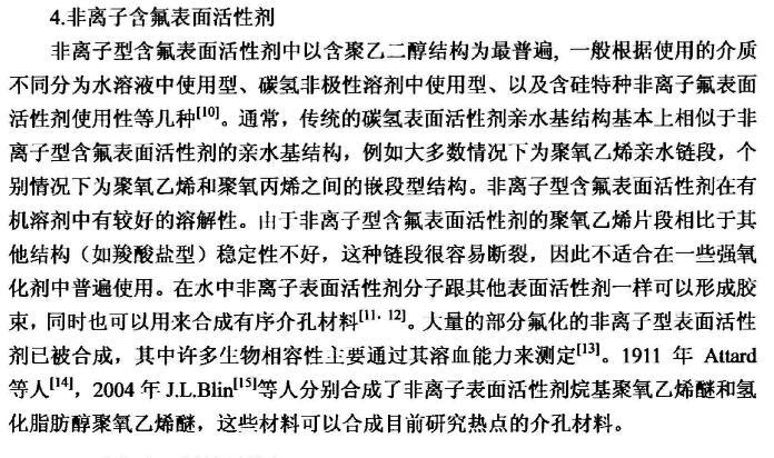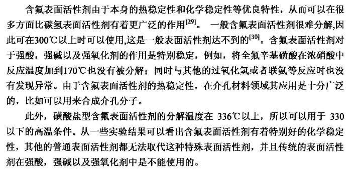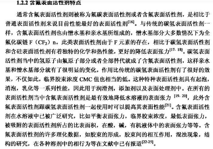 【摘要】:本論文首先對(duì)新型含氟表面活性劑的特性,應(yīng)用領(lǐng)域,國(guó)內(nèi)外研究進(jìn)展進(jìn)行了全面的綜述。含氟表面活性劑是目前最受青睞的特種表面活性劑,相比于傳統(tǒng)的碳?xì)浔砻婊钚詣?,含氟表面活性劑的用量少,降低水溶液表面張力的作用?qiáng),同時(shí)可以跟其它表面活性劑起到很好的復(fù)配效果,可以應(yīng)用于消防、鉻霧抑制劑、造紙、冶金、起泡與消泡劑的合成等很多領(lǐng)域。