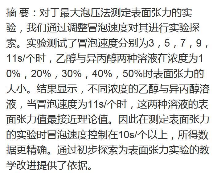 表面張力測(cè)定實(shí)驗(yàn)的改進(jìn)——冒泡速度對(duì)其影響的初探