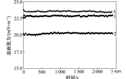 圖1 120℃和4 MPa下稠油動(dòng)態(tài)表面張力變化圖